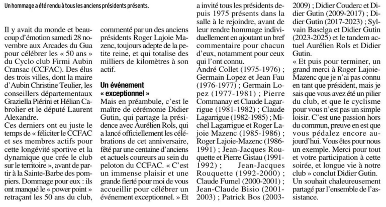 L’Assemblée Générale s’est déroulée aux Arcades et a été marquée par la nomination d’un nouveau co-président. Par la suite, M. Gutin a présenté un récapitulatif des différents présidents qui ont dirigé le club au cours des 50 dernières années. M. Lajoie Mazenc a également fait une rétrospective sur la vie du club durant cette période. De nombreux élus étaient présents pour l’occasion, et la journée s’est terminée par un moment convivial autour du verre de l’amitié. C’était une belle célébration de l’histoire et de la continuité du club !